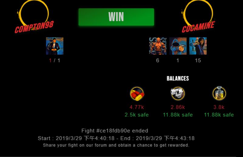 Check my latest fight ! compton98 vs cocaminecocamine (25)in #drugwars-fight • 7 years ago #gaming #fight #dw