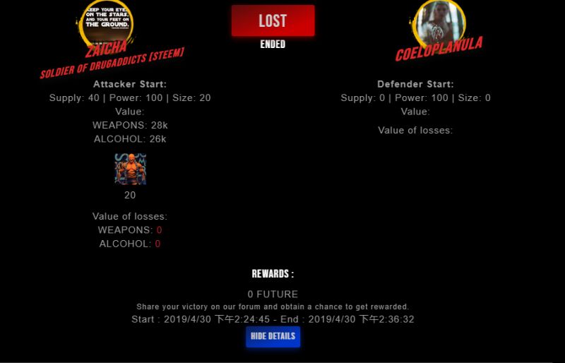 Check my latest fight ! zaicha vs coeloplanulacoeloplanula (26)in #drugwars-fight • 7 years ago #gaming #fight #dw