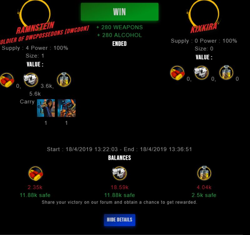 Congratulations @coliraver ! Your fight received an upvote of 2% from the King Dealer as incentive for your activity and as a gratitude for your support to the game.