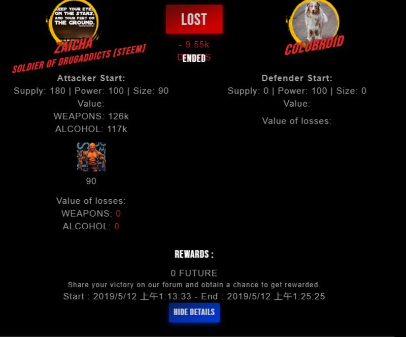 Check my latest fight ! zaicha vs colubroidcolubroid (25)in #drugwars-fight • 7 years ago #gaming #fight #dw
