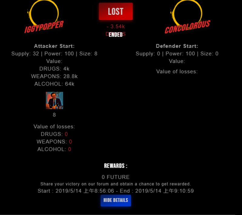 Check my latest fight ! iggypopper vs concolorousconcolorous (25)in #drugwars-fight • 7 years ago #gaming #fight #dw