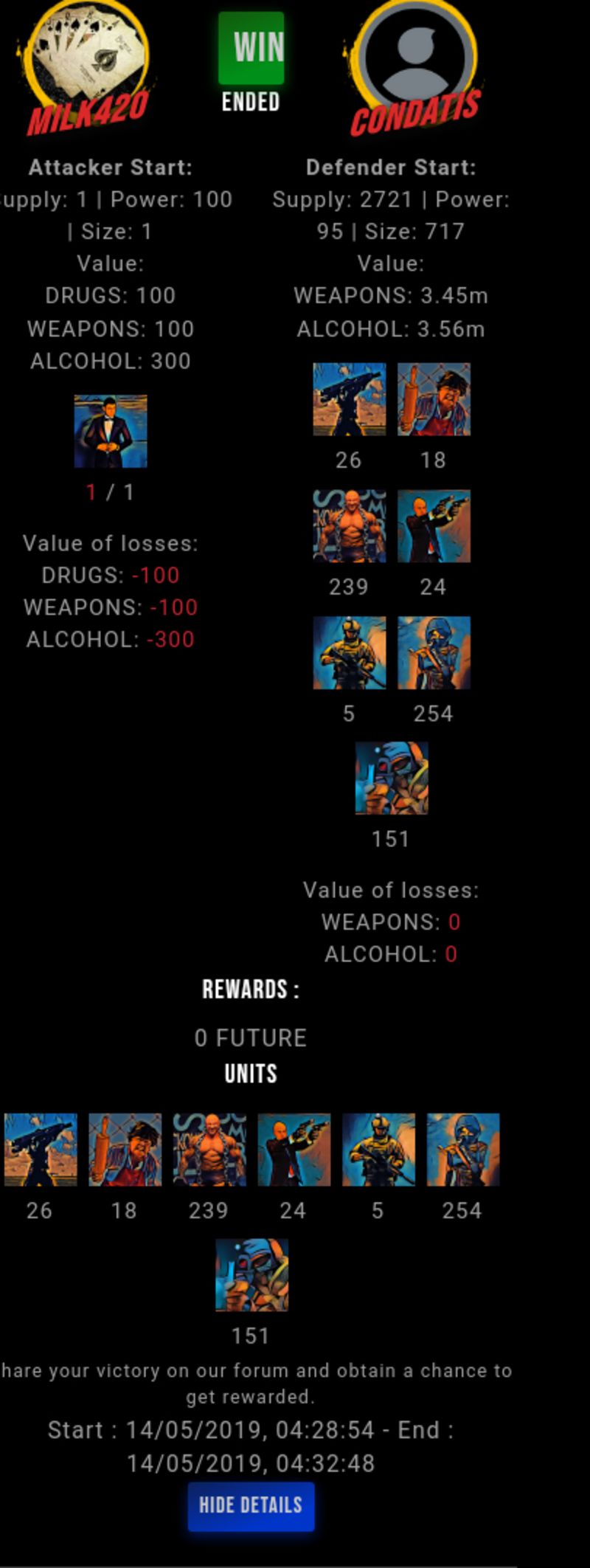 Check my latest fight ! milk420 vs condatiscondatis (33)in #drugwars-fight • 7 years ago #gaming #fight #dw