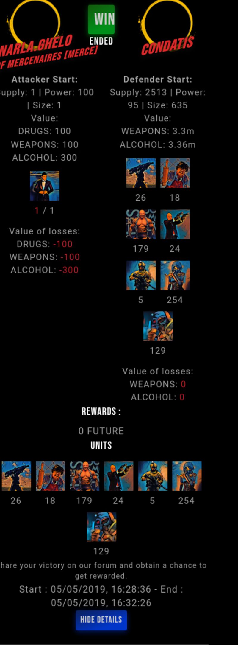 Check my latest fight ! narla.ghelo vs condatiscondatis (33)in #drugwars-fight • 7 years ago #gaming #fight #dw