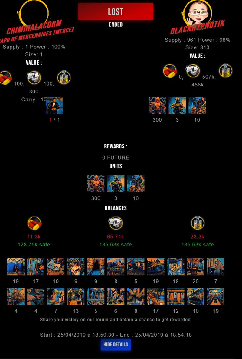 Congratulations @criminalacorm ! Your fight received an upvote of 2.2% from the King Dealer as incentive for your activity and as a gratitude for your support to the game.