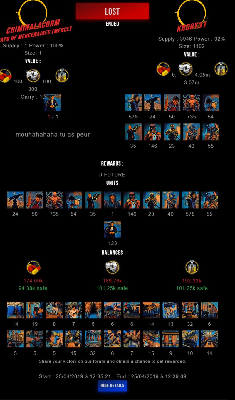 Congratulations @criminalacorm ! Your fight received an upvote of 1.8% from the King Dealer as incentive for your activity and as a gratitude for your support to the game.