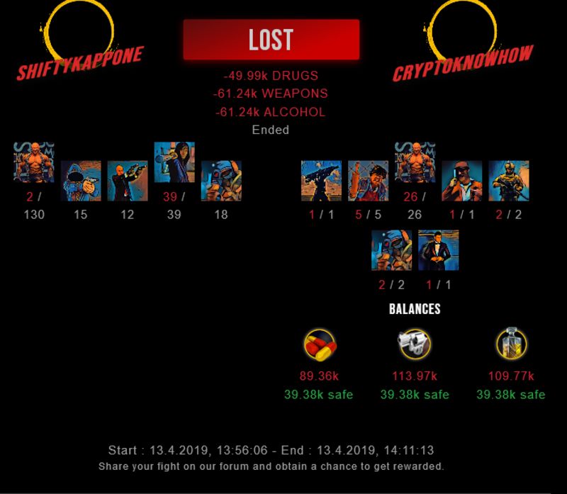 Check my latest fight ! shiftykappone vs cryptoknowhowcryptoknowhow (35)in #drugwars-fight • 7 years ago #gaming #fight #dw