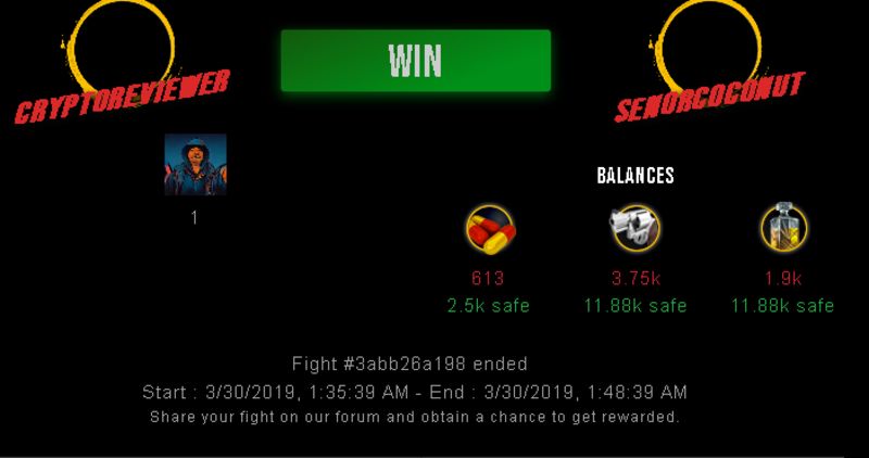 Check my latest fight ! cryptoreviewer vs senorcoconutcryptoreviewer (50)in #drugwars-fight • 7 years ago #gaming #fight #dw