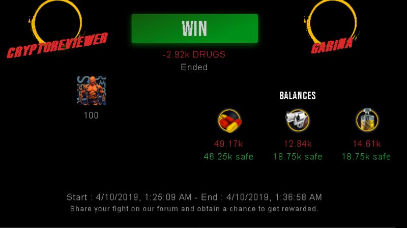 Check my latest fight ! cryptoreviewer vs garinacryptoreviewer (50)in #drugwars-fight • 7 years ago #gaming #fight #dw