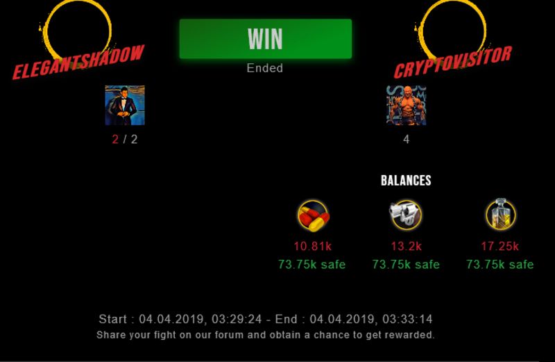 Congratulations @cryptovisitor ! Your fight received an upvote of 1.9% from the King Dealer as incentive for your activity and as a gratitude for your support to the game.