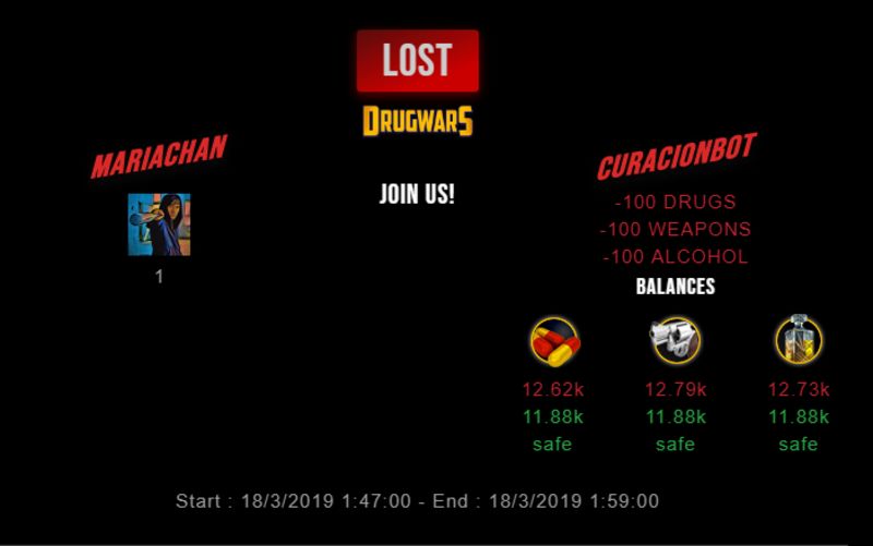 Check my latest fight ! mariachan vs curacionbotcuracionbot (36)in #drugwars-fight • 7 years ago #gaming #fight #dw