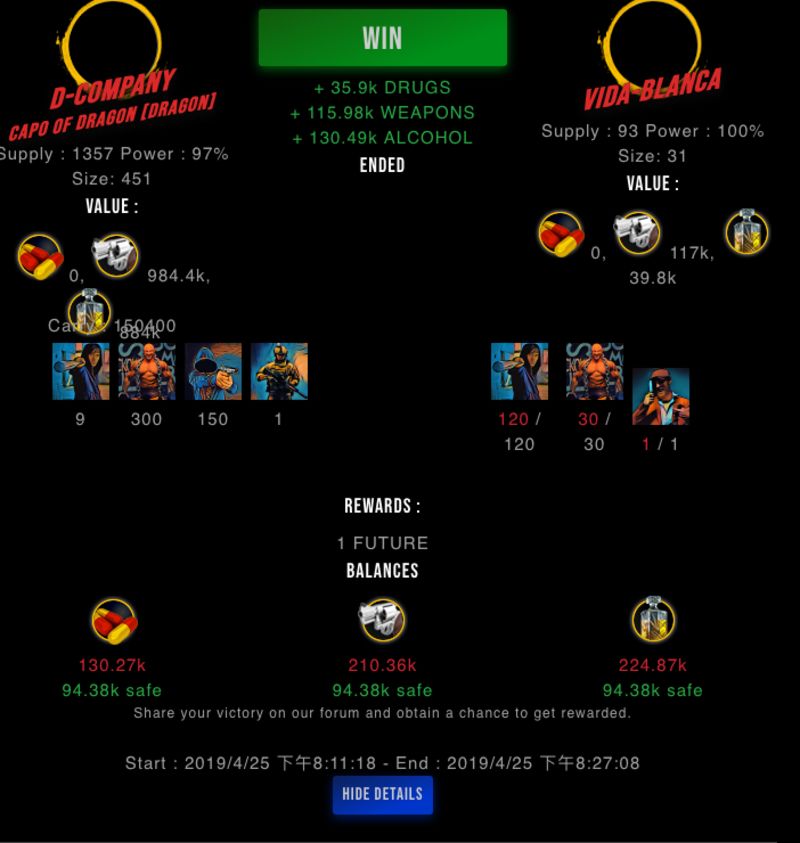 Check my latest fight ! d-company vs vida-blancad-company (50)in #drugwars-fight • 7 years ago #gaming #fight #dw
