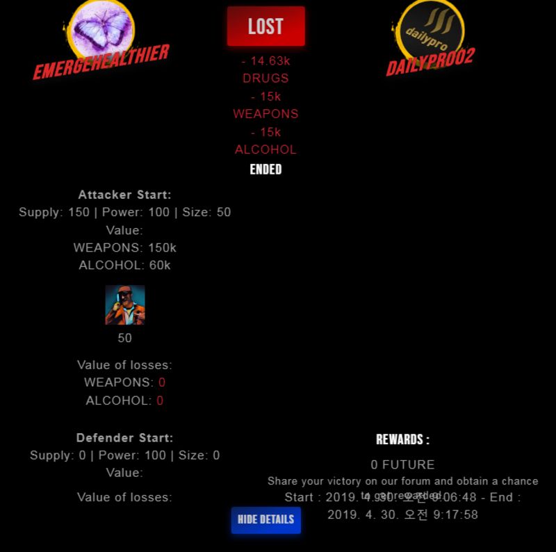Check my latest fight ! emergehealthier vs dailypro02dailypro02 (55)in #drugwars-fight • 7 years ago #gaming #fight #dw