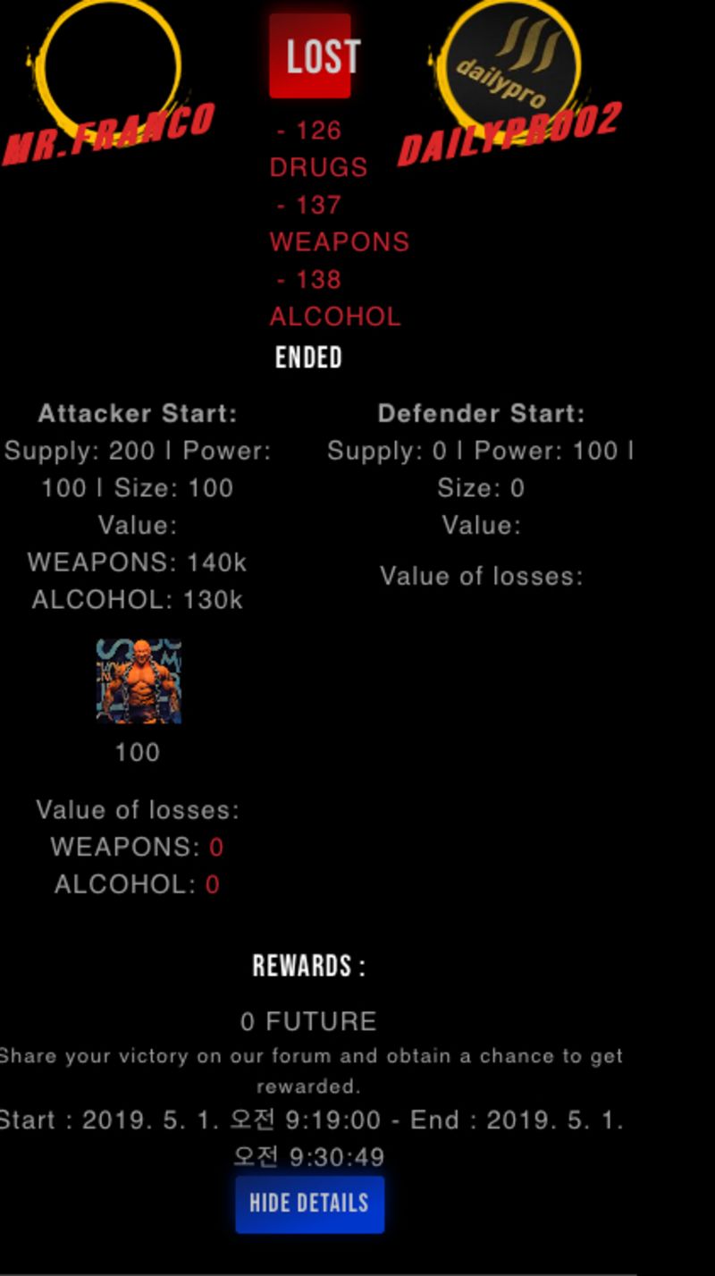 Congratulations @dailypro02 ! Your fight received an upvote of 1.8% from the King Dealer as incentive for your activity and as a gratitude for your support to the game.