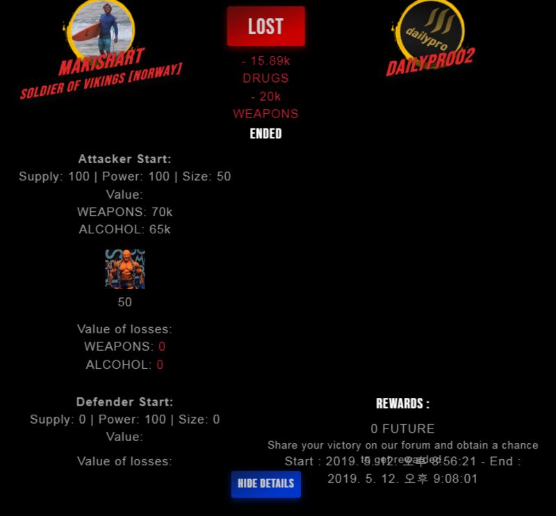 Congratulations @dailypro02 ! Your fight received an upvote of 2.1% from the King Dealer as incentive for your activity and as a gratitude for your support to the game.