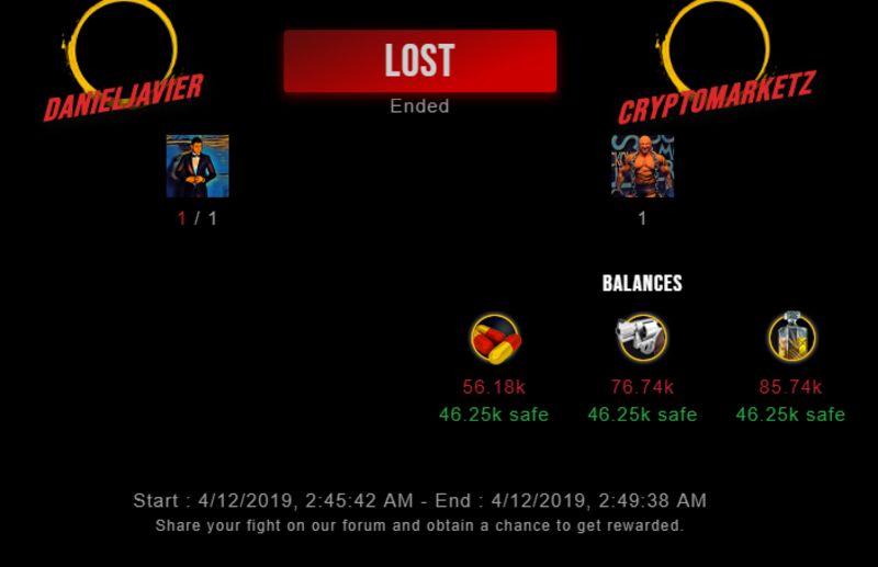 Check my latest fight ! danieljavier vs cryptomarketzdanieljavier (55)in #drugwars-fight • 7 years ago #gaming #fight #dw