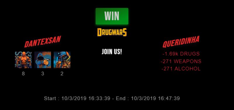 Check my latest fight ! dantexsan vs queridinhadantexsan (36)in #drugwars-fight • 7 years ago #gaming #fight #dw