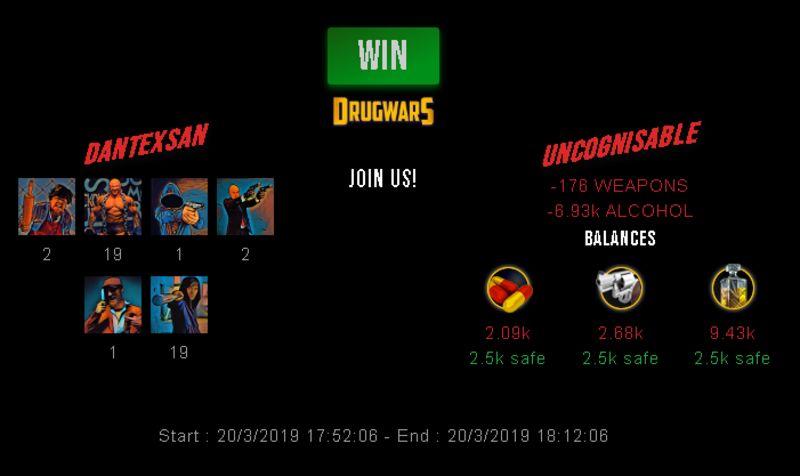 Check my latest fight ! dantexsan vs uncognisabledantexsan (36)in #drugwars-fight • 7 years ago #gaming #fight #dw