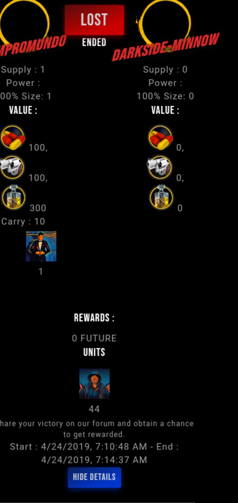 Check my latest fight ! vempromundo vs darkside-minnowdarkside-minnow (44)in #drugwars-fight • 7 years ago #gaming #fight #dw