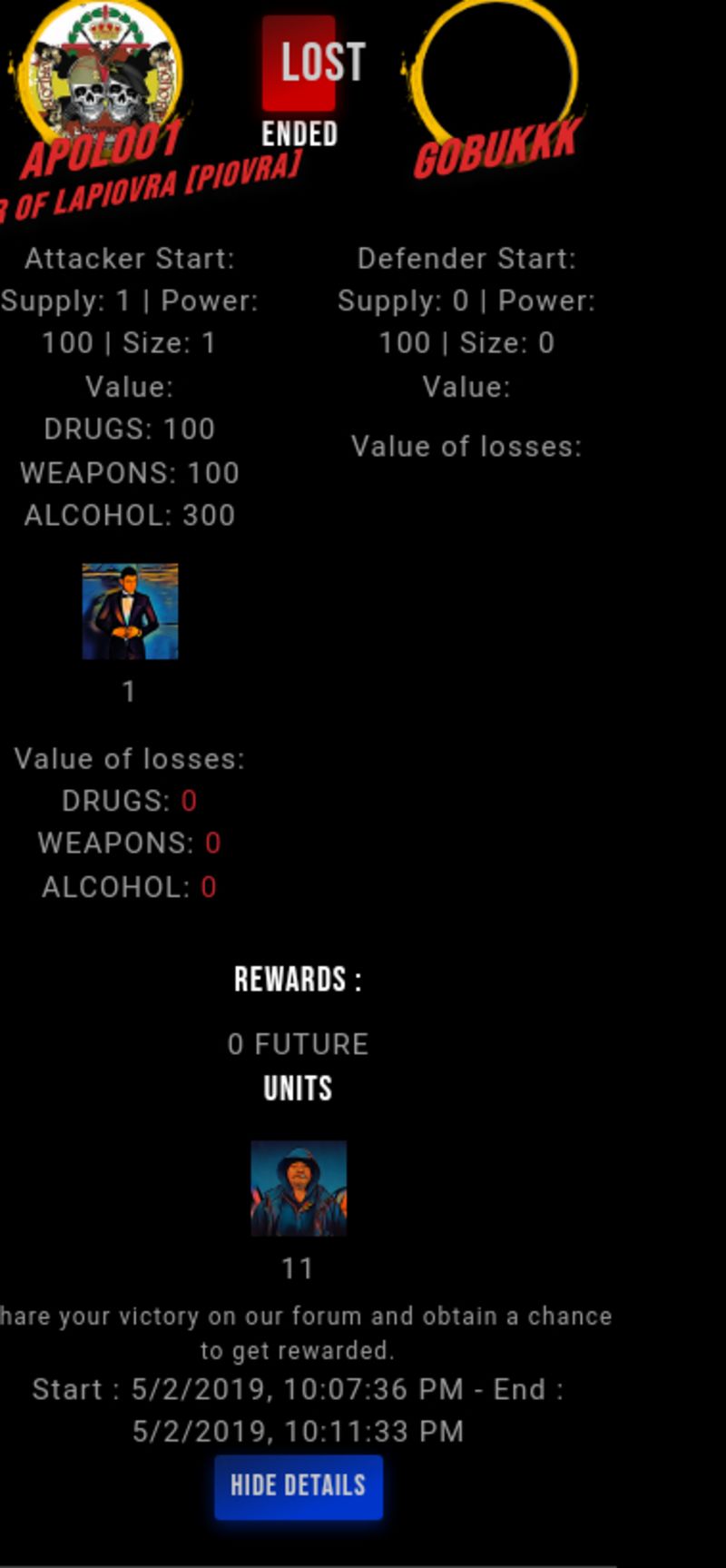 Check my latest fight ! apoloo1 vs gobukkkdatinku (32)in #drugwars-fight • 7 years ago #gaming #fight #dw