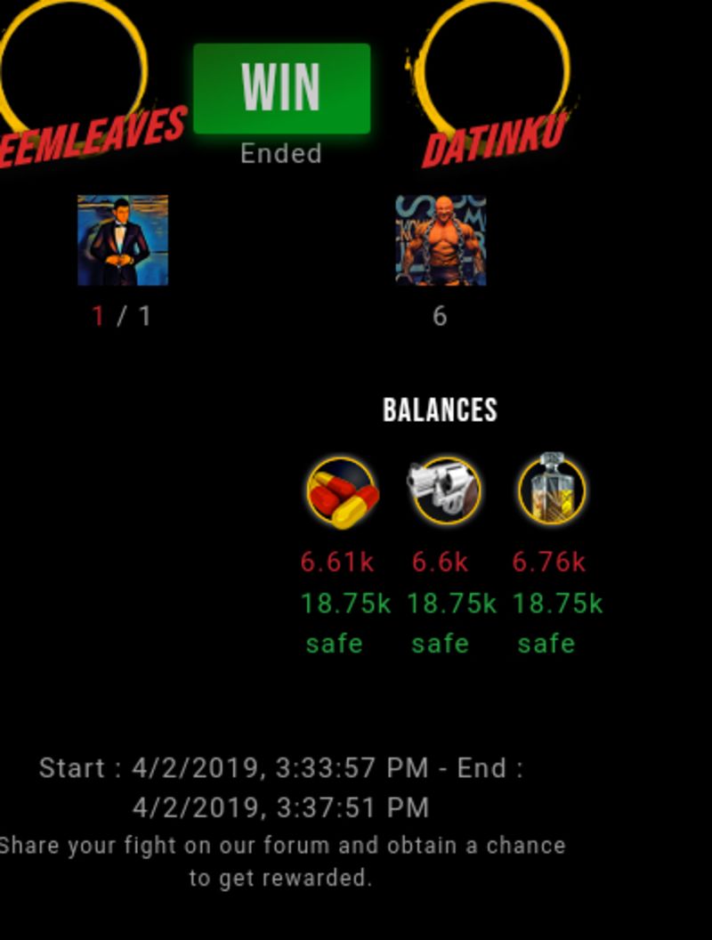 Check my latest fight ! steemleaves vs datinkudatinku (32)in #drugwars-fight • 7 years ago #gaming #fight #dw