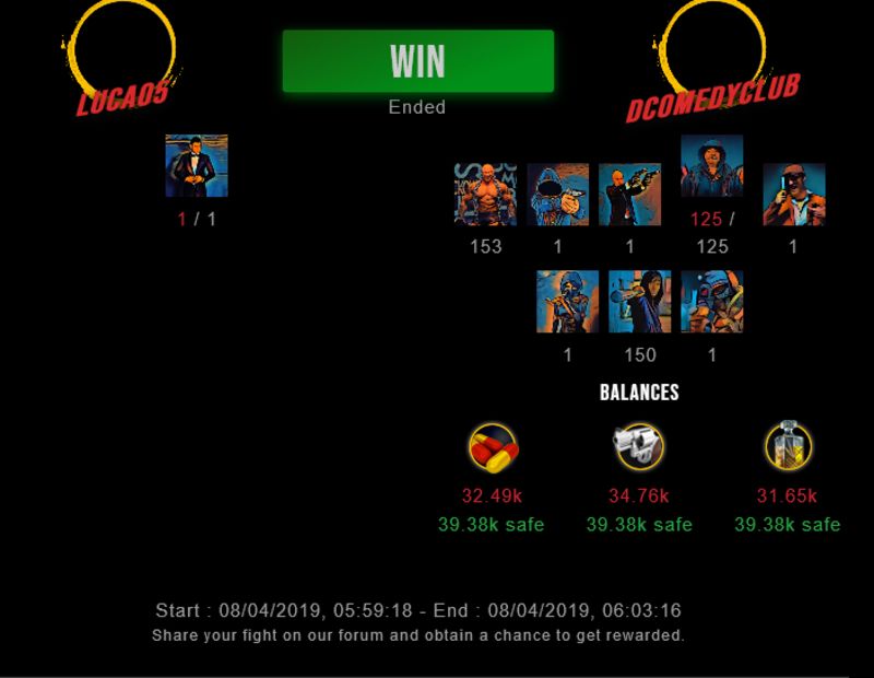 Check my latest fight ! luca05 vs dcomedyclubdcomedyclub (53)in #drugwars-fight • 7 years ago #gaming #fight #dw