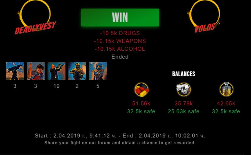 Check my latest fight ! deadlyvesy vs volosdeadlyvesy (61)in #drugwars-fight • 7 years ago #gaming #fight #dw