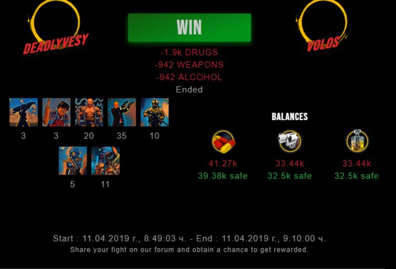 Check my latest fight ! deadlyvesy vs volosdeadlyvesy (61)in #drugwars-fight • 7 years ago #gaming #fight #dw