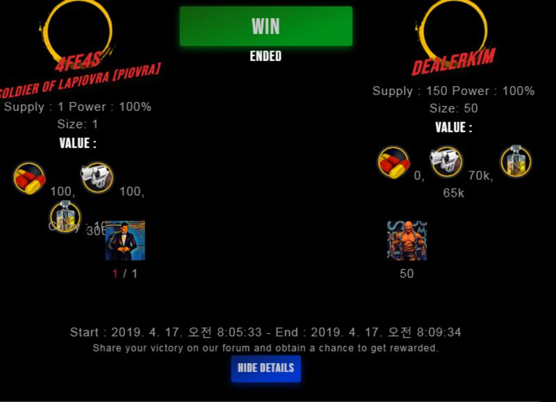Congratulations @dealerkim ! Your fight received an upvote of 1.1% from the King Dealer as incentive for your activity and as a gratitude for your support to the game.