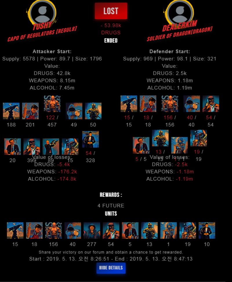 Check my latest fight ! tushy vs dealerkimdealerkim (44)in #drugwars-fight • 7 years ago #gaming #fight #dw