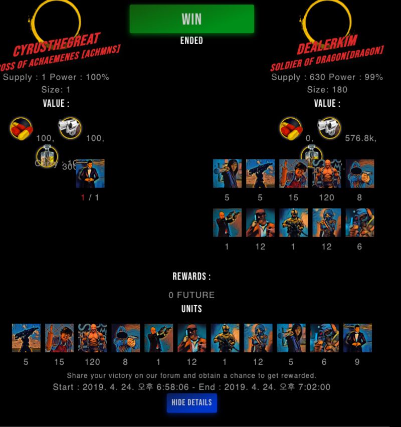 Congratulations @dealerkim ! Your fight received an upvote of 0.6% from the King Dealer as incentive for your activity and as a gratitude for your support to the game.