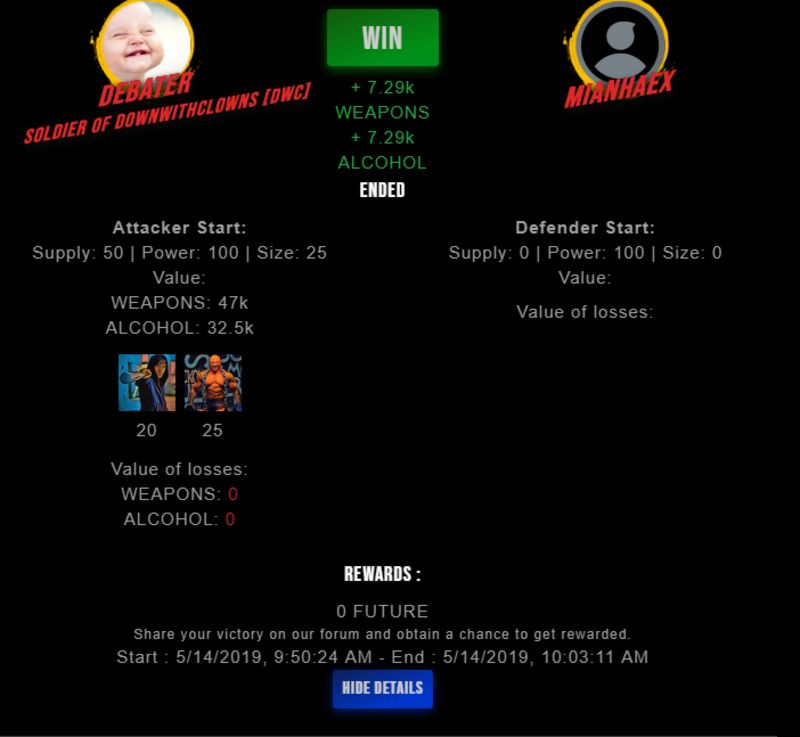 Check my latest fight ! debater vs mianhaexdebater (35)in #drugwars-fight • 7 years ago #gaming #fight #dw