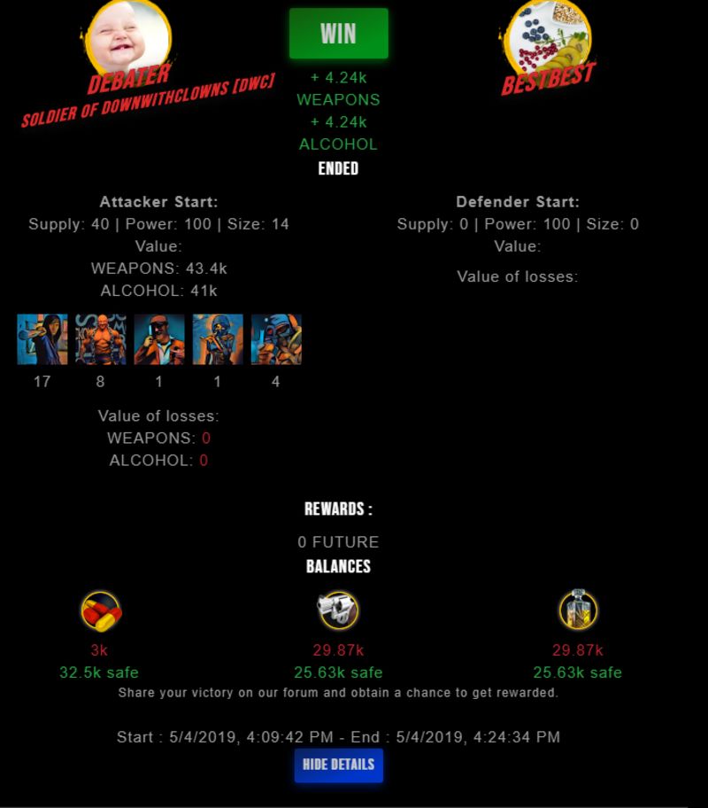 Check my latest fight ! debater vs bestbestdebater (35)in #drugwars-fight • 7 years ago #gaming #fight #dw