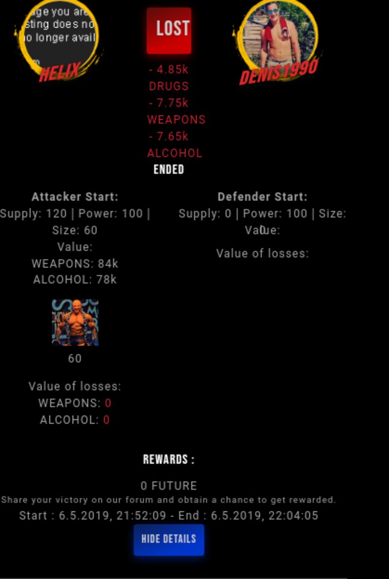 Check my latest fight ! helix vs denis1990denis1990 (38)in #drugwars-fight • 7 years ago #gaming #fight #dw
