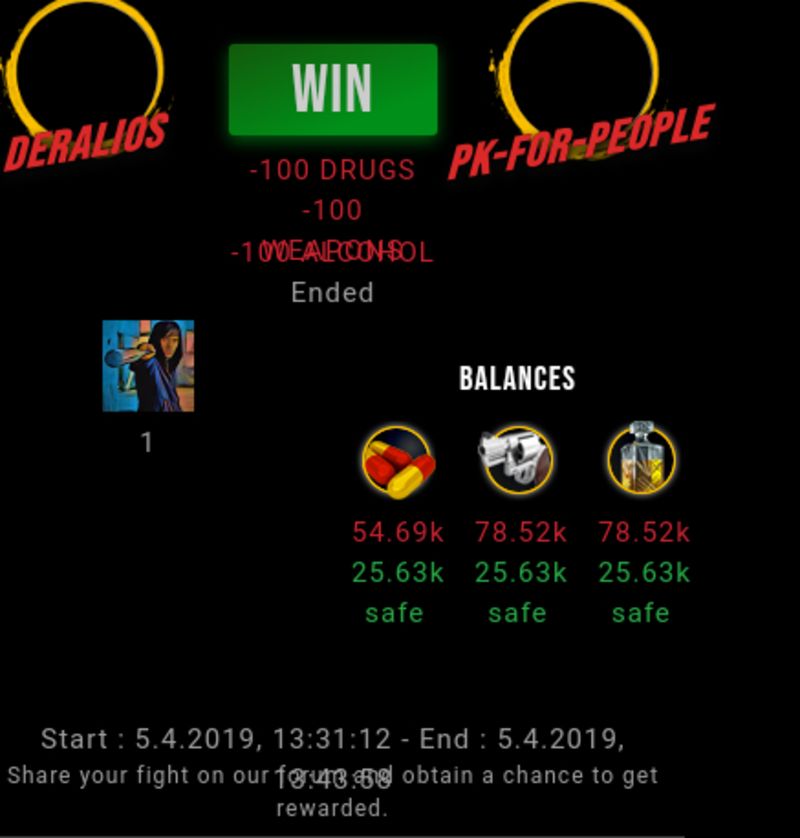 Check my latest fight ! deralios vs pk-for-peoplederalios (43)in #drugwars-fight • 7 years ago #gaming #fight #dw