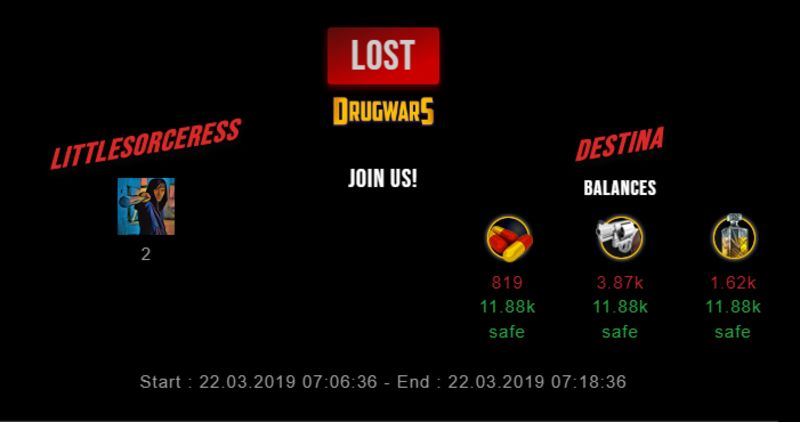 Check my latest fight ! littlesorceress vs destinadestina (28)in #drugwars-fight • 7 years ago #gaming #fight #dw