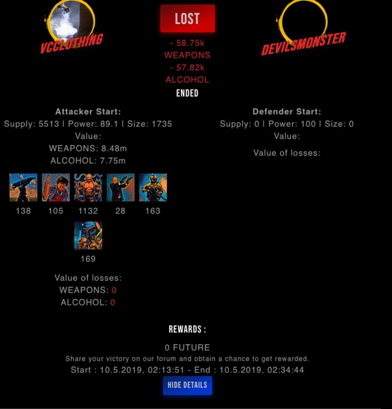 Check my latest fight ! vcclothing vs devilsmonsterdevilsmonster (56)in #drugwars-fight • 7 years ago #gaming #fight #dw