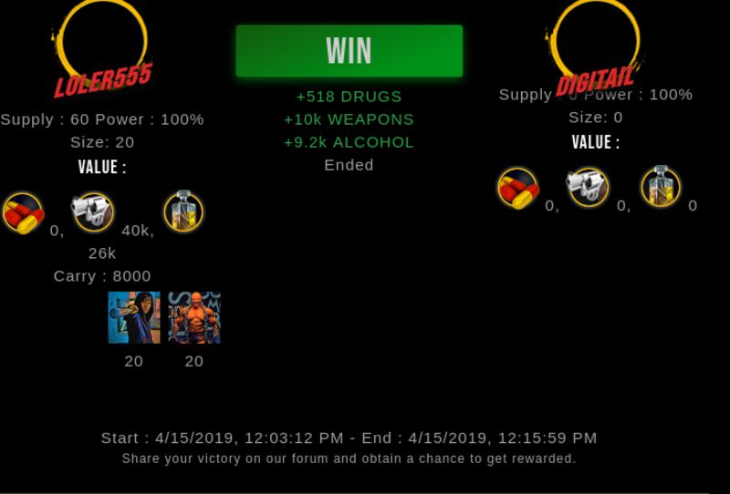 Check my latest fight ! loler555 vs undefineddigitail (25)in #drugwars-fight • 7 years ago #gaming #fight #dw