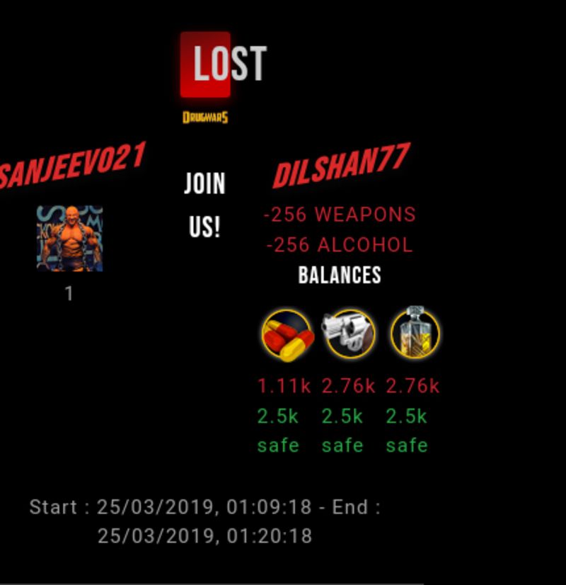 Check my latest fight ! sanjeev021 vs dilshan77dilshan77 (1)(1)in #drugwars-fight • 7 years ago #gaming #fight #dw