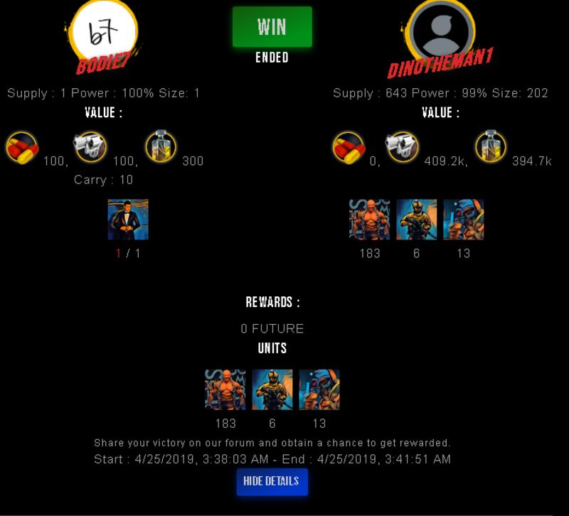 Congratulations @dinotheman1 ! Your fight received an upvote of 17% from the Dealer as incentive for your activity and as a gratitude for your support to the game.