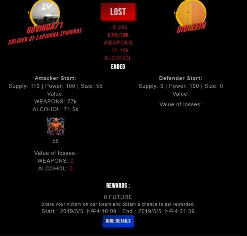 Check my latest fight ! govinda71 vs diolefindiolefin (25)in #drugwars-fight • 7 years ago #gaming #fight #dw