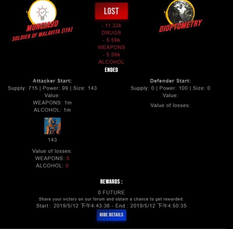 Check my latest fight ! moncia90 vs dioptometrydioptometry (25)in #drugwars-fight • 7 years ago #gaming #fight #dw