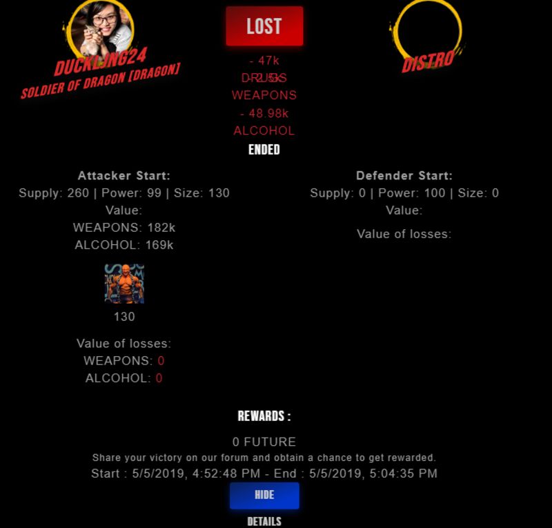 Congratulations @distro ! Your fight received an upvote of 2% from the King Dealer as incentive for your activity and as a gratitude for your support to the game.