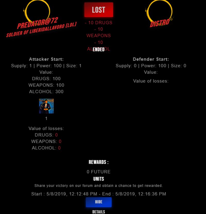 Congratulations @distro ! Your fight received an upvote of 2.1% from the King Dealer as incentive for your activity and as a gratitude for your support to the game.