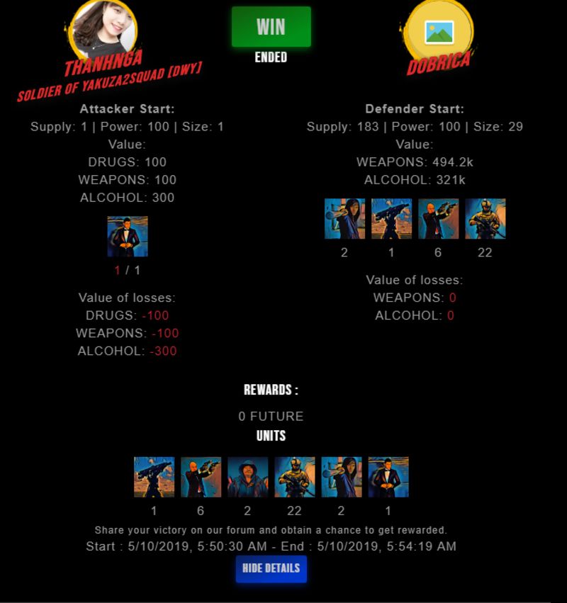 Check my latest fight ! thanhnga vs dobricadobrica (61)in #drugwars-fight • 7 years ago #gaming #fight #dw