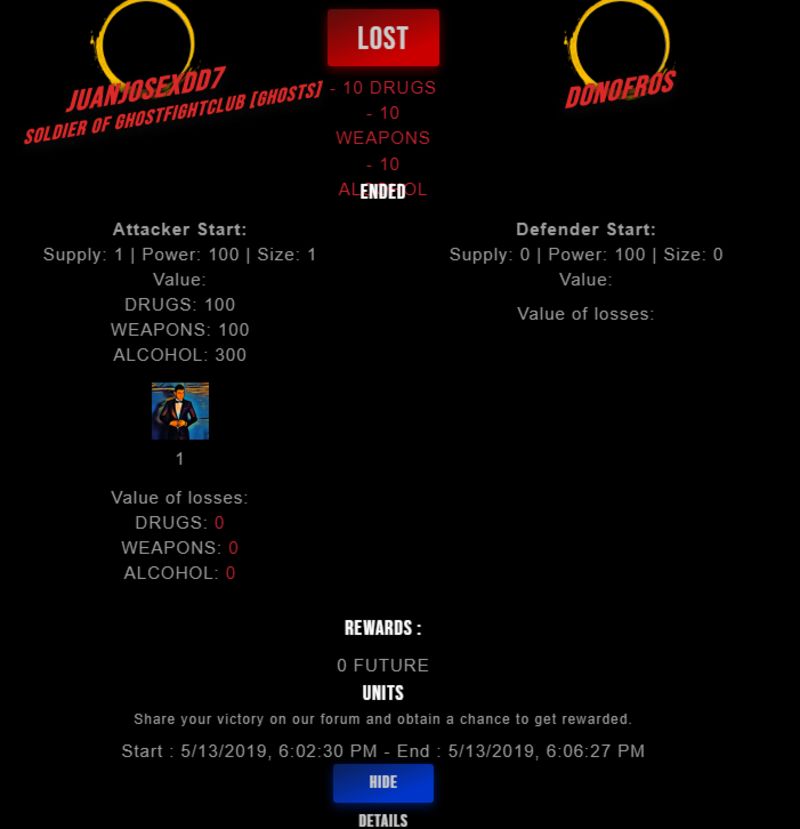 Check my latest fight ! juanjosexdd7 vs donofrosdonofros (45)in #drugwars-fight • 7 years ago #gaming #fight #dw