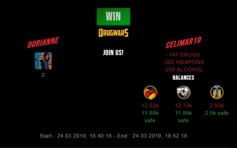 Check my latest fight ! dorianne vs celimar19dorianne (36)in #drugwars-fight • 7 years ago #gaming #fight #dw