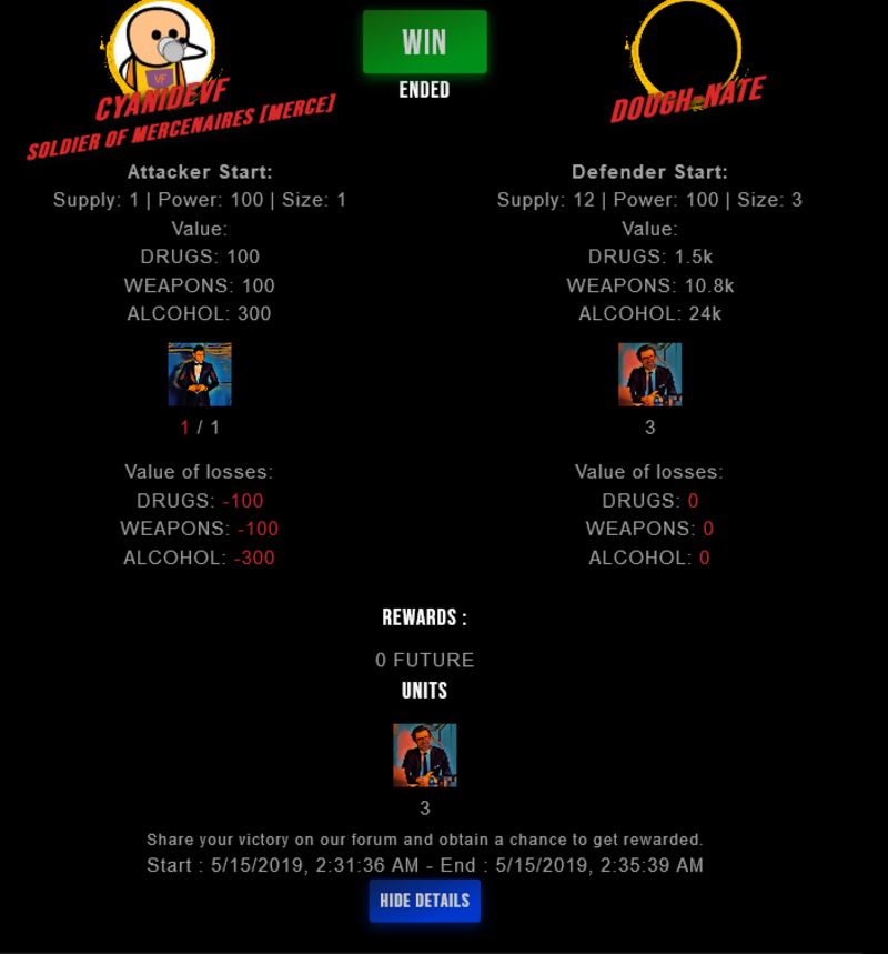 Check my latest fight ! cyanidevf vs dough-natedough-nate (37)in #drugwars-fight • 7 years ago #gaming #fight #dw