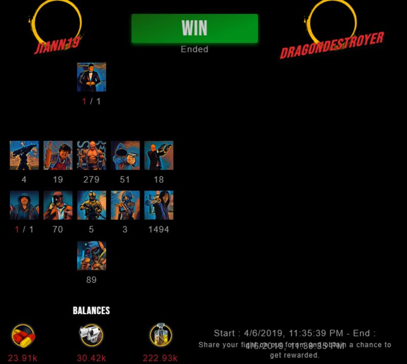 Check my latest fight ! jiann19 vs dragondestroyerdragondestroyer (40)in #drugwars-fight • 7 years ago #gaming #fight #dw