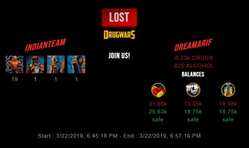 Check my latest fight ! indianteam vs dreamarifdreamarif (48)in #drugwars-fight • 7 years ago #gaming #fight #dw