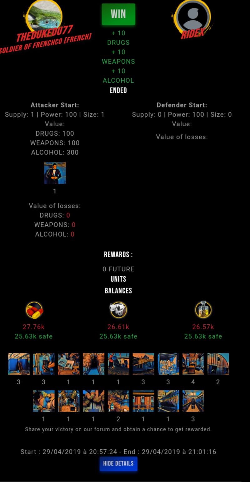 Check my latest fight ! thedukedu77 vs ridexduke77 (56)in #drugwars-fight • 7 years ago #gaming #fight #dw